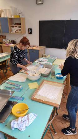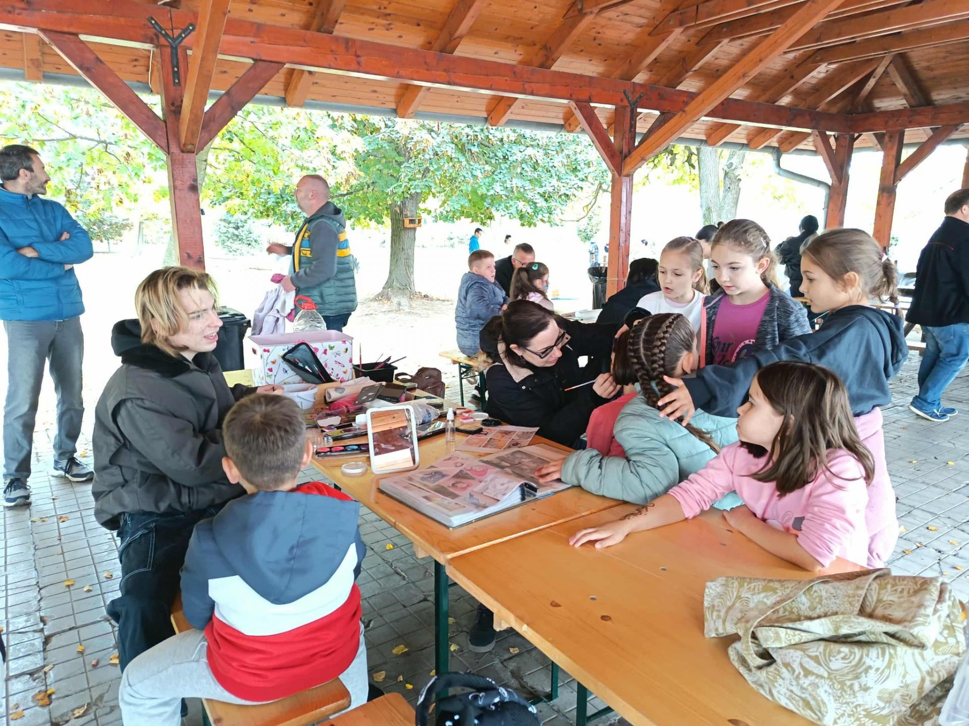 Visszaérkezés után sem fogyott a jókedv: a „Falusi 7próba”, kézműveskedés, makramé, henna- és arcfestés, valamint hajfonás várta a gyerekeket. A finomságokról sem feledkeztünk meg: a pedagógusok házi BÁNICÁ-val és fokhagymás mártogatóval készültek (a sütésben Itkor Józsefné és Hermánné Simon Erzsébet segített), de volt aprósütemény, almalé és szörp is A SÖTYE jóvoltából pedig frissen sült prósza került az asztalra.