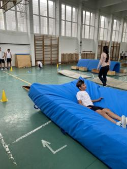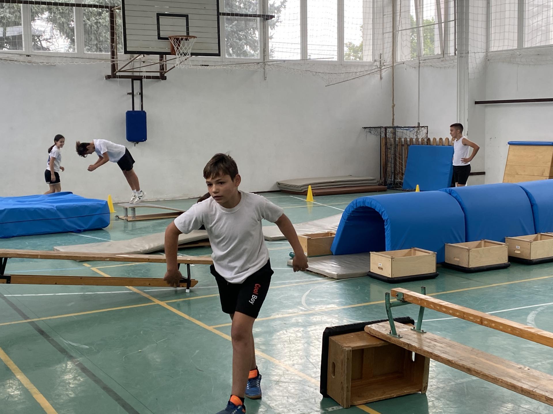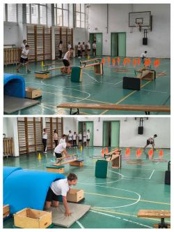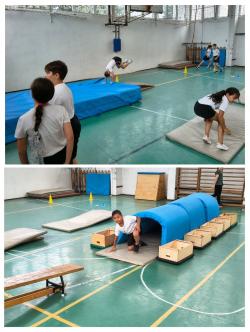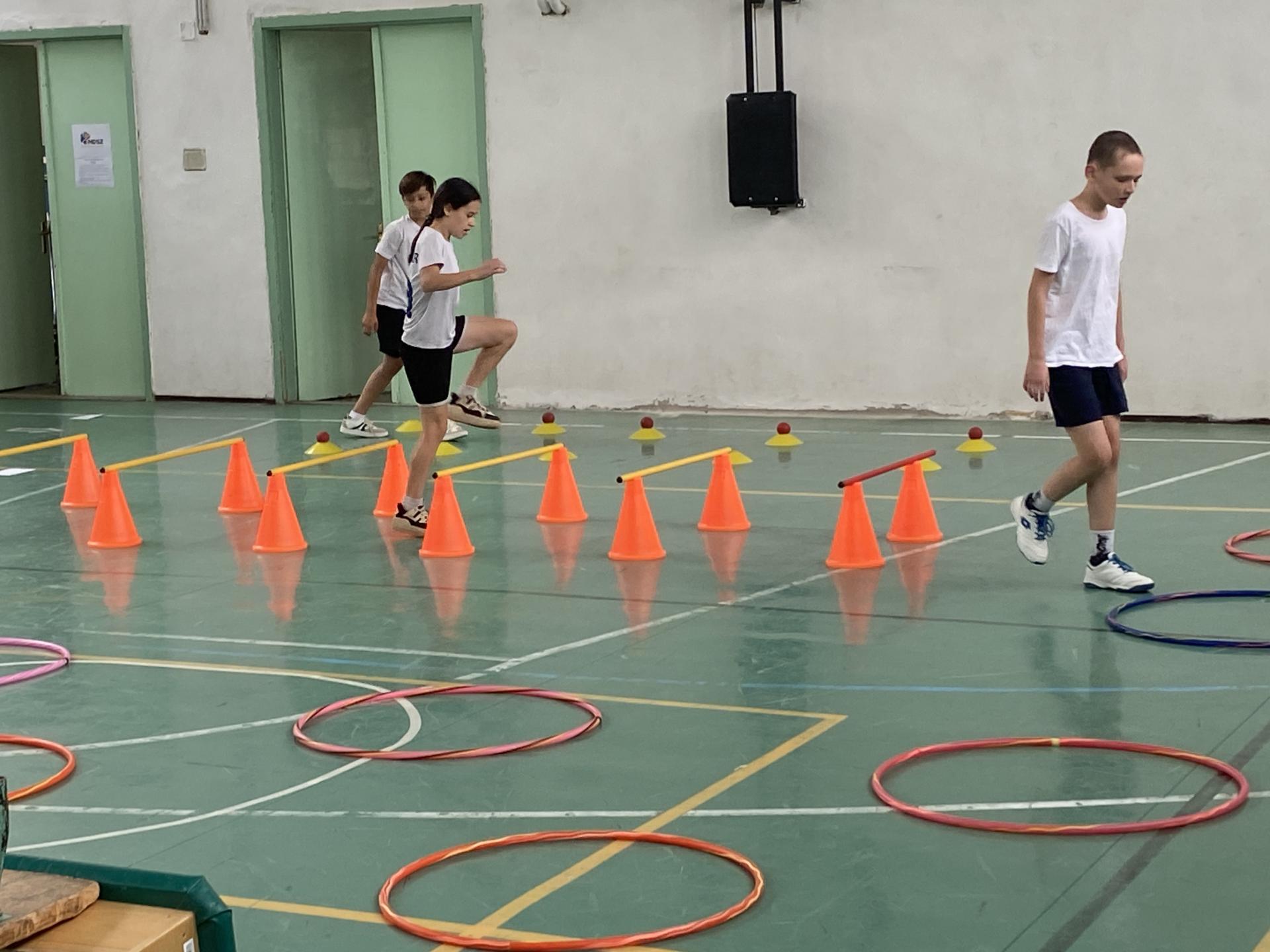 A korábbi évektől eltérően új programmal készültünk: a tornateremben felállított komplex akadálypálya teljesítésével kívántuk biztosítani a sokoldalú mozgásos tevékenységet tanulóinknak.