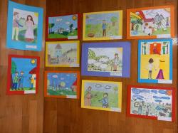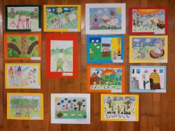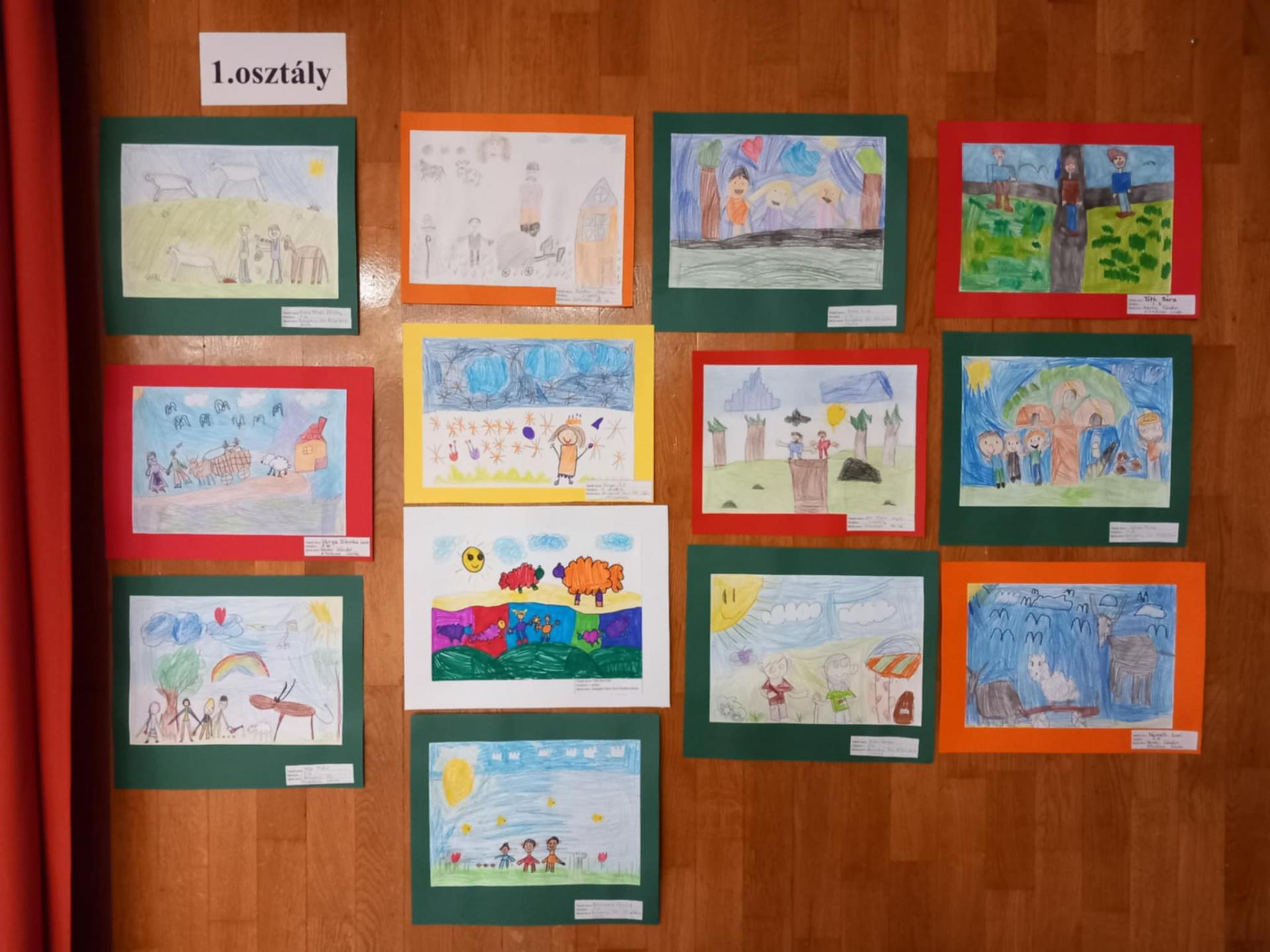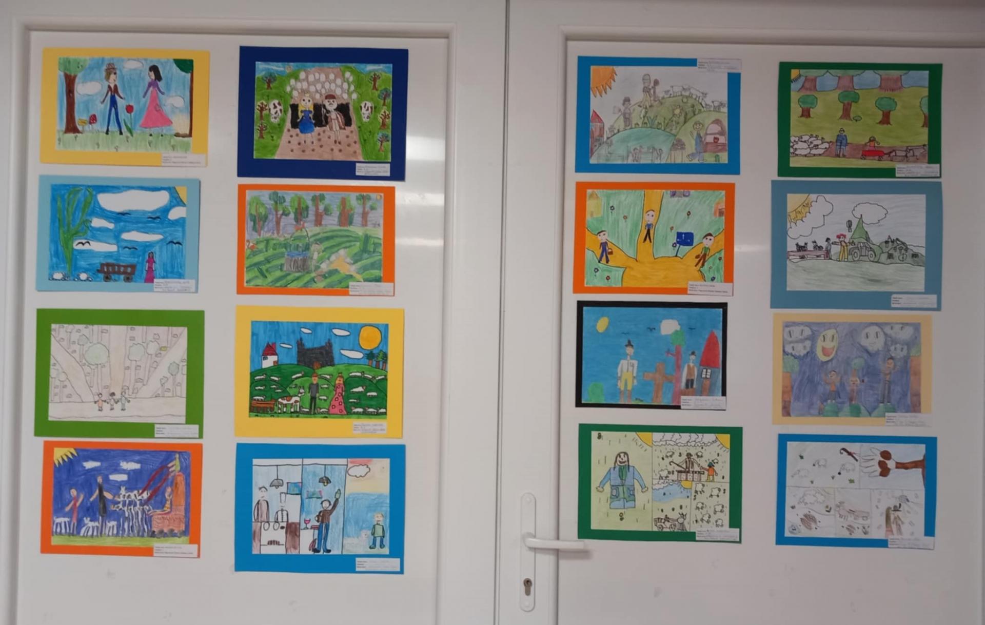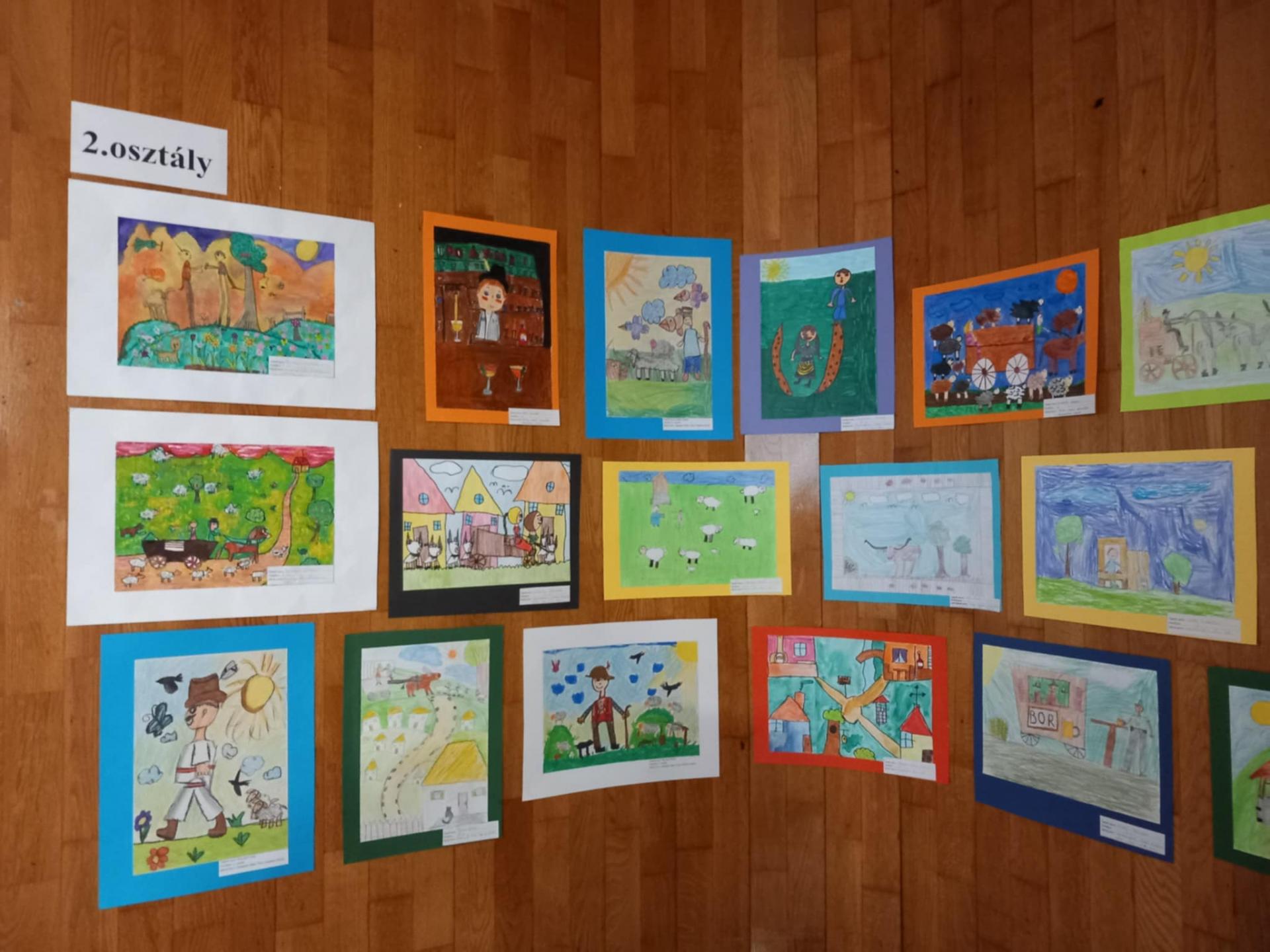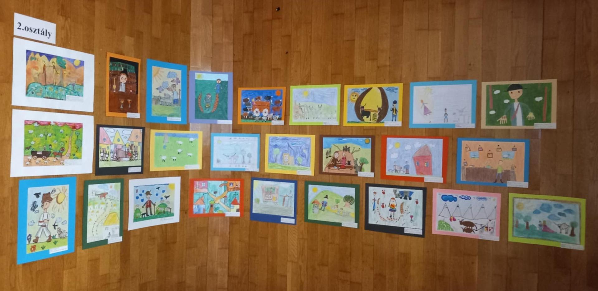 A mesemondó versenyhez kapcsolódó rajzversenyre készült alkotások az aulában kaptak helyet, ahol a látogatók megnézhették a tanulók fantáziadús rajzait. Rajzverseny témájaként a – Szívből jött ajándék című bolgár meséhez készítettek meseillusztrációkat a gyerekek. 15 iskolából 115 alkotás érkezett. Különböző technikájú, szebbnél szebb rajzokat kaptunk.