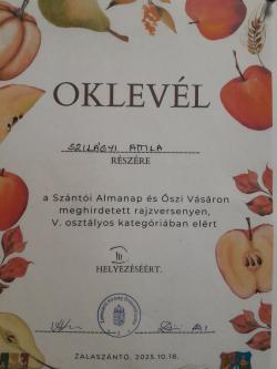 Szilágyi Attila, 5. osztályos tanuló az ősz folyamán két külső rajzpályázaton is elindult.