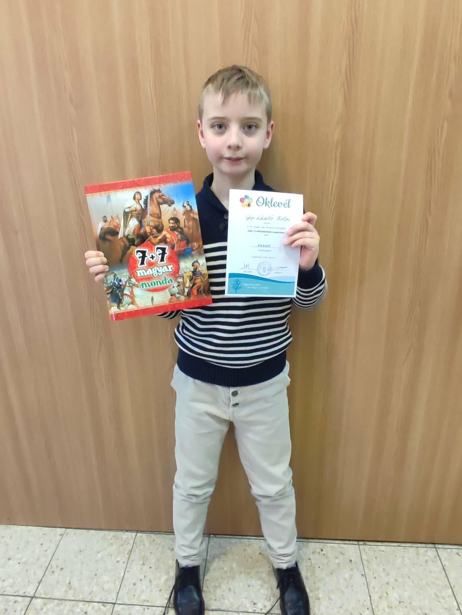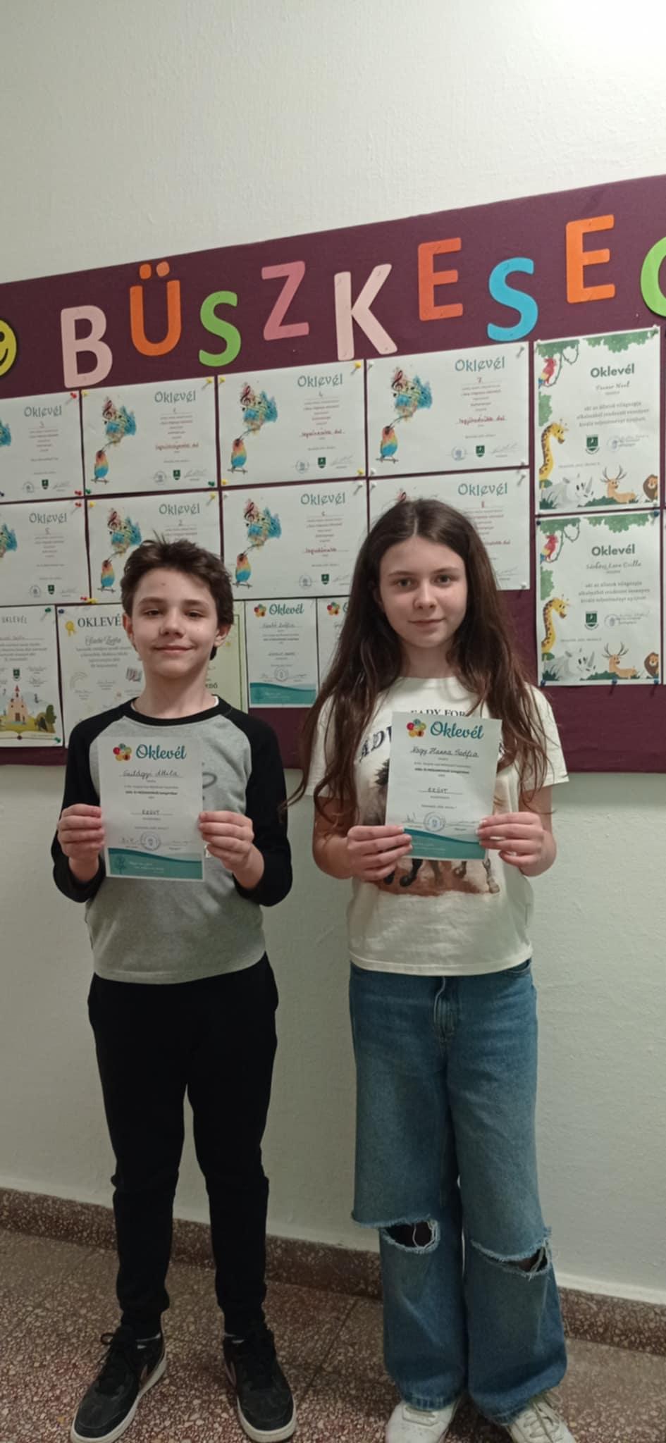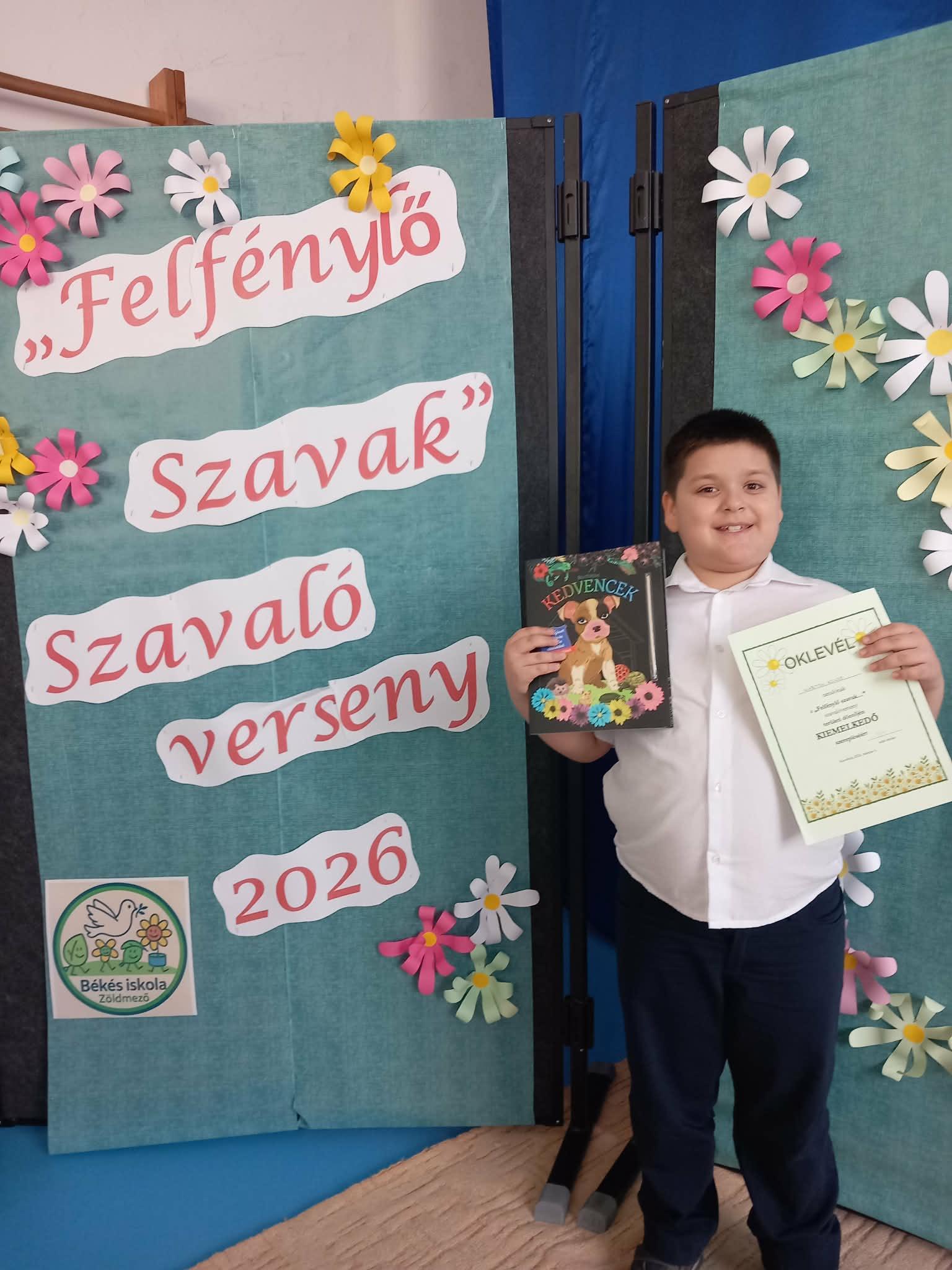 2026. március 6-án Marton Kolos, iskolánk 1. osztályos tanulója a keszthelyi Zöldmező Utcai EGYMI által megrendezésre kerülő „Felfénylő Szavak” szavalóverseny területi döntőjén kiemelkedő szerepléséért oklevélben és könyvjutalomban részesült.