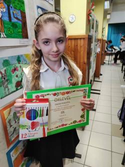 Az ugyanitt meghirdetett rajzversenyen Hajas Violetta (3. osztály) szintén 3. helyezést ért el. Felkészítőjük Lázárné Mátés Tímea.