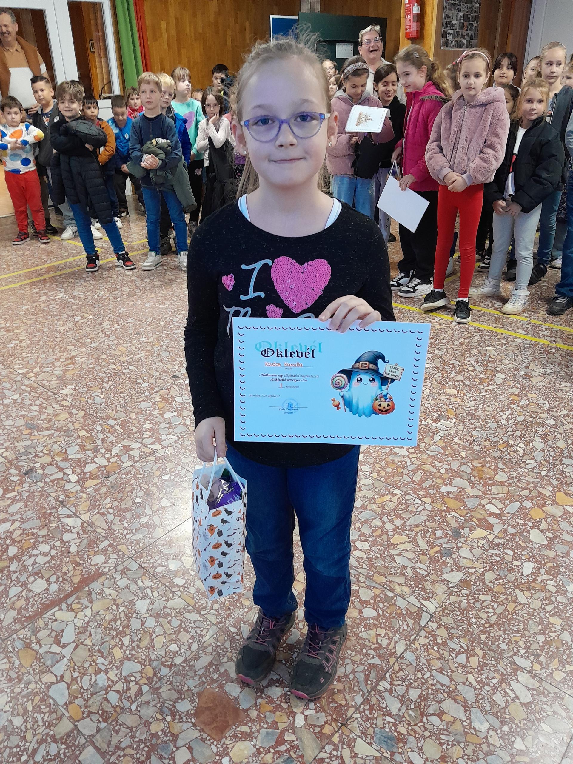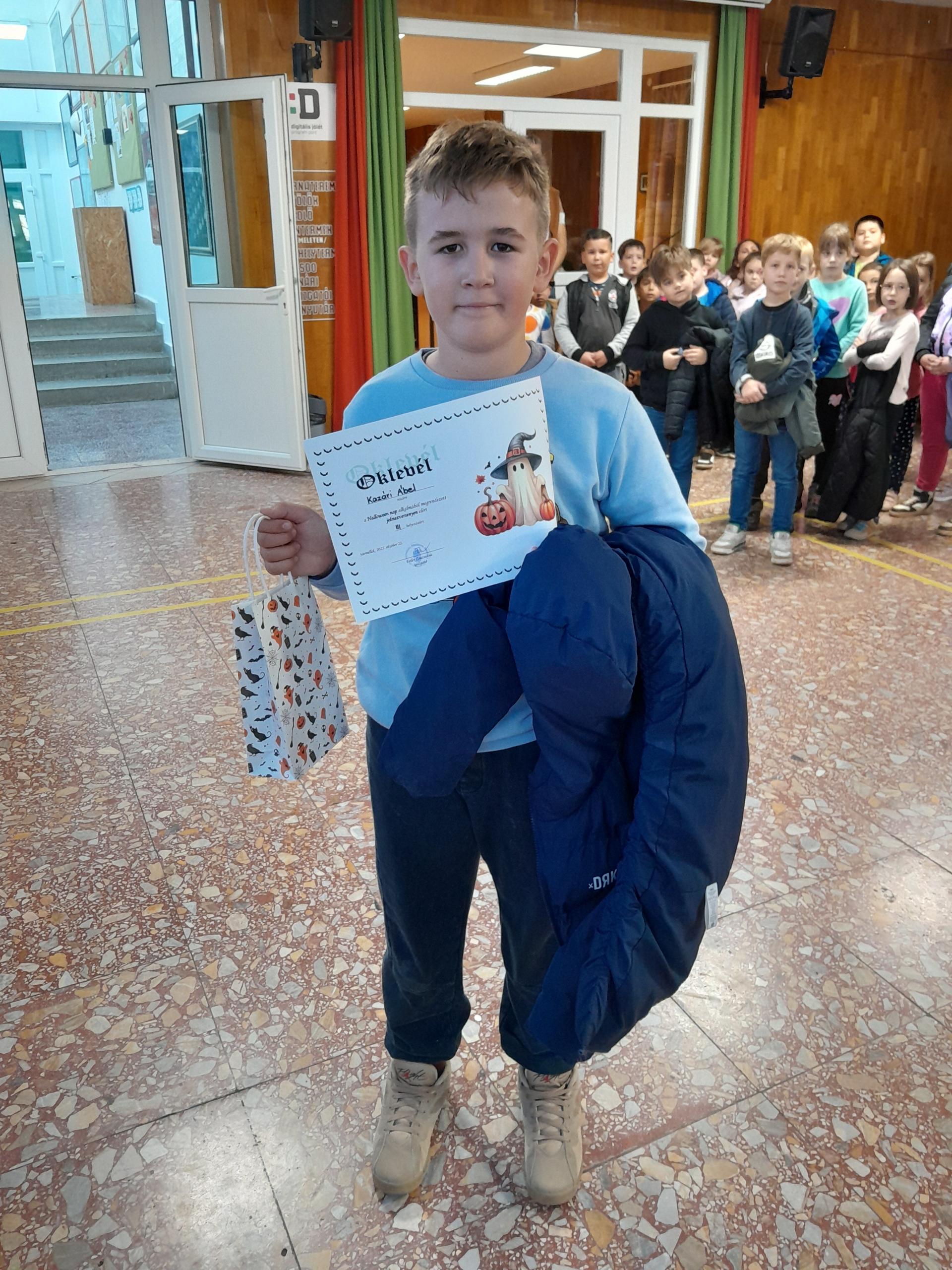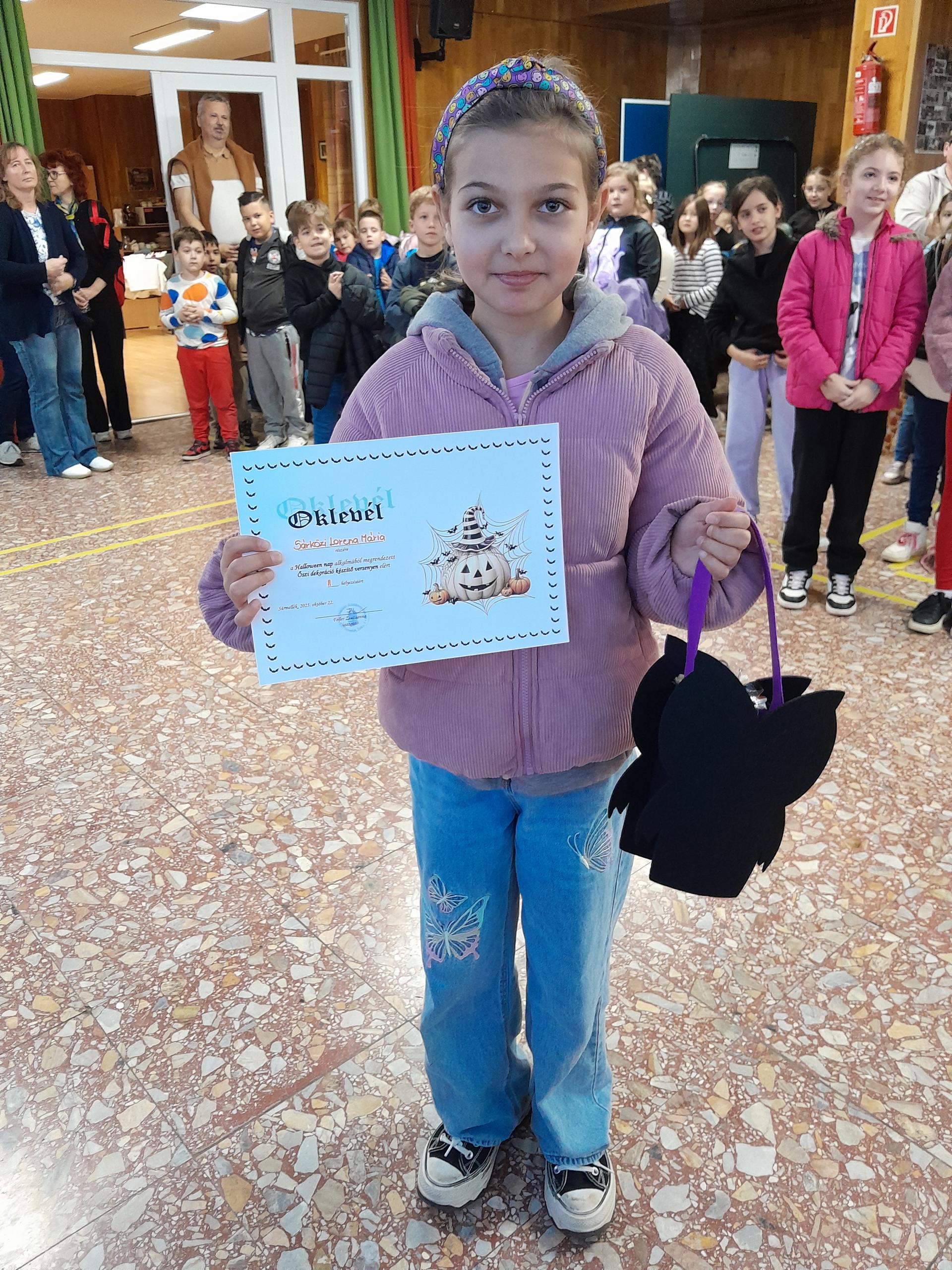 Ebéd után jelmezes felvonulással kezdődött a program. A színházteremben mutathatták be szellemesebbnél szellemesebb jelmezeiket tanulóink. Boszorkányok, denevérek, csontvázak és más rémisztő szuperhősök jelentek meg a színpadon. A gyerekek szavazhattak a nekik legjobban tetsző társukra.
