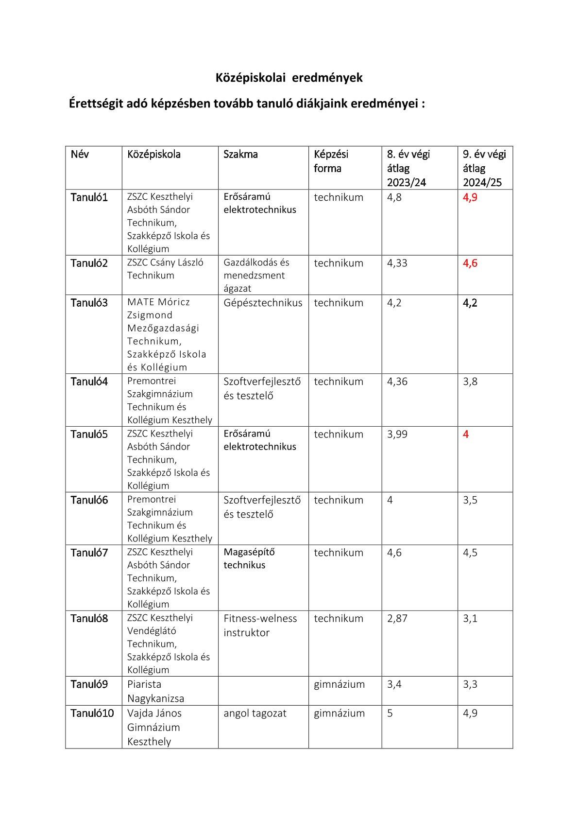 Örömmel láttuk, hogy a diákjaink többsége javított, illetve megtartotta a nyolcadik osztályos eredményeit.